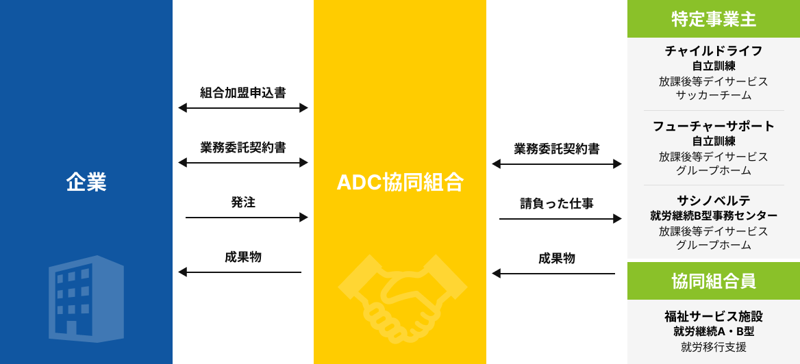 利用者さまは、御社内ではなく、当組合が運営する福祉施設にて業務に従事していただきます。